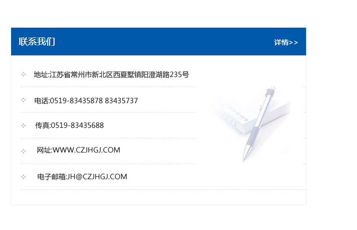 地址:常州市新北區友邦商務大廈1幢16、17層  電話:0519-85101652  傳真:0519-85112595  郵編:213022  網址:www.cz-jiayue_cn.ultra-petcn.com  郵箱:xiajifengaa@163.com